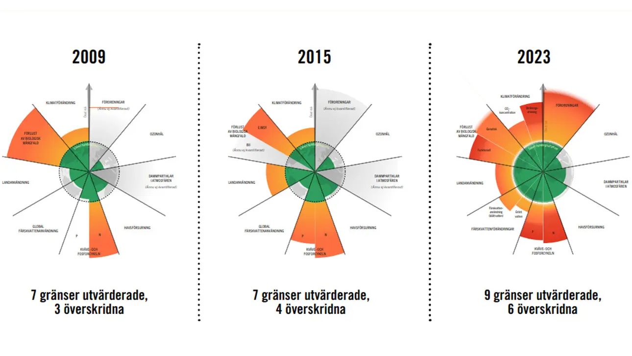 Den senaste bedömningen av de planetära gränserna, genomförd i september 2023, visar att sex av de nio gränserna har överskridits.