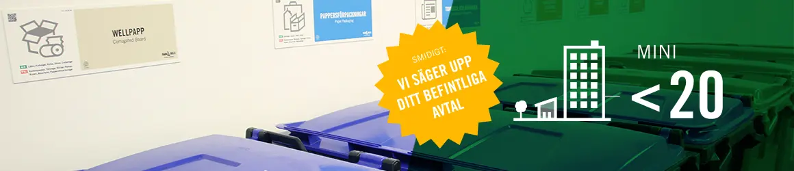 Det här paketet passar ett miljörum för en lite mindre bostadsförening med upp till 20 lägenheter. Om du vill veta mer, fyll i nedan formulär så kontaktar en säljare dig nästkommande vardag.