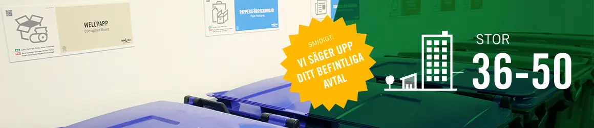 Det här paketet passar miljörum i en bostadsförening med upp till 50 lägenheter. Om du vill veta mer, fyll i nedan formulär så kontaktar en säljare dig nästkommande vardag.